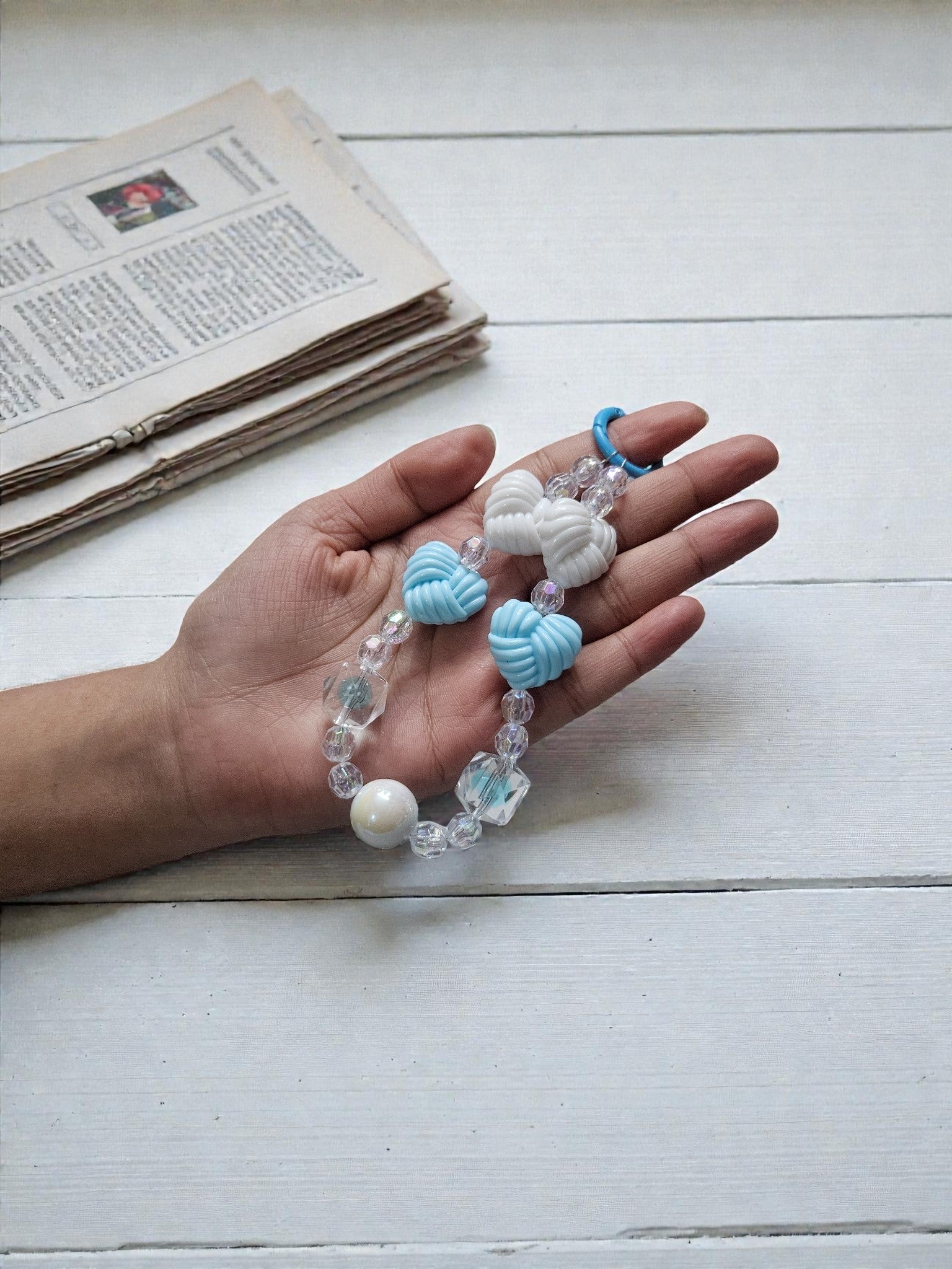 🟢 Blue & White Knot Beads – Unique twisted knot design for a trendy look