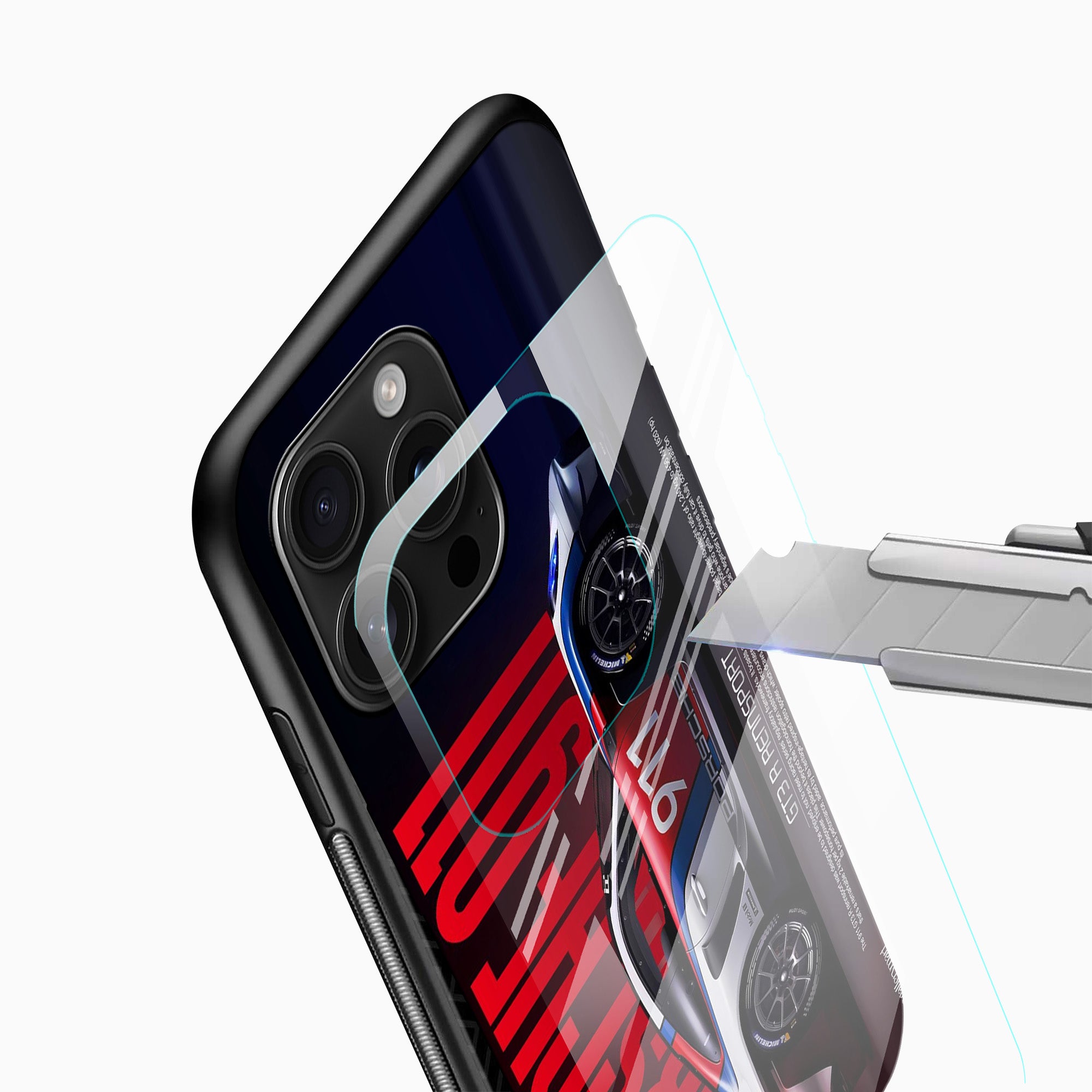 Crafted with a premium tempered glass back, the case offers a sleek glossy finish that enhances the vibrant racing artwork. The shock-absorbing TPU edges help protect your phone from everyday drops and bumps while maintaining a slim and comfortable grip.