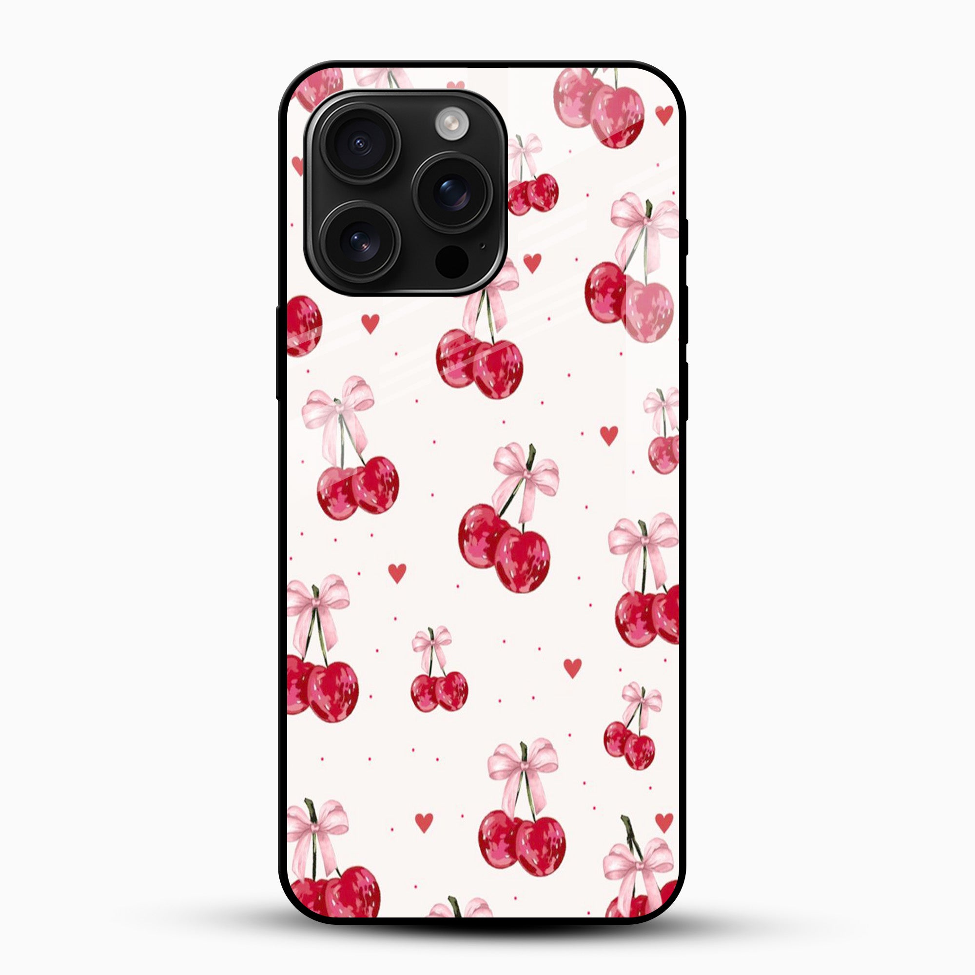 The Pink Cherry Bow Aesthetic Glass Mobile Case is designed for lovers of cute, pastel, and kawaii styles. Featuring glossy cherries tied with soft pink bows and tiny heart details, this case adds a charming, romantic touch to your phone while delivering durable everyday protection.