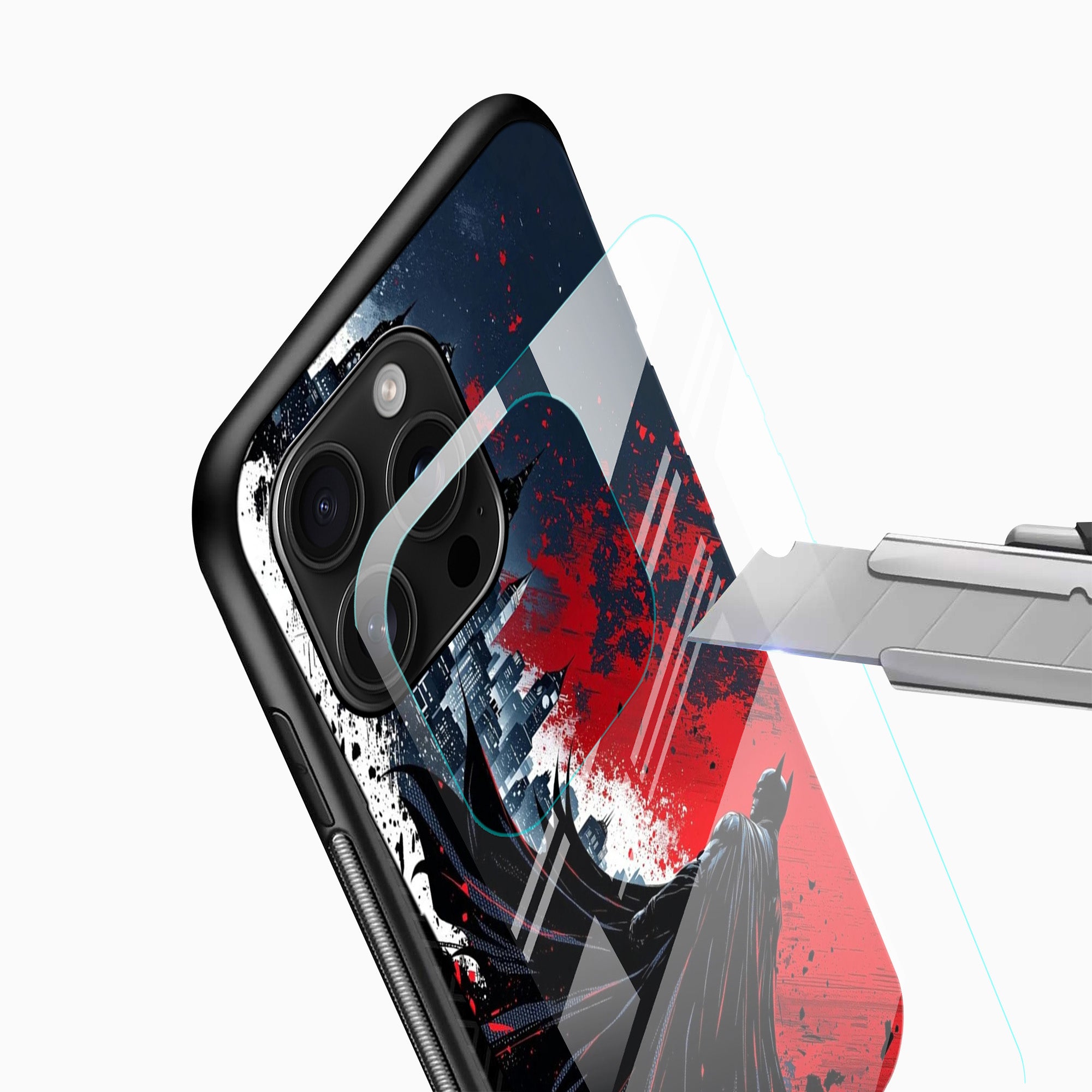 Make a bold statement with this Dark Knight Red Shadow Glass Mobile Cover, featuring a powerful silhouette design with dramatic red splash artwork and cityscape background. The premium tempered glass back gives a glossy HD finish while maintaining slim protection. Designed for daily use, this glass cover combines style and durability with shockproof edges and scratch-resistant coating — perfect for superhero lovers who want a strong, edgy aesthetic.